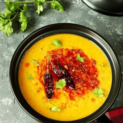 Potatoes cooked in a bright, tangy tomato-onion Banarasi masala.
